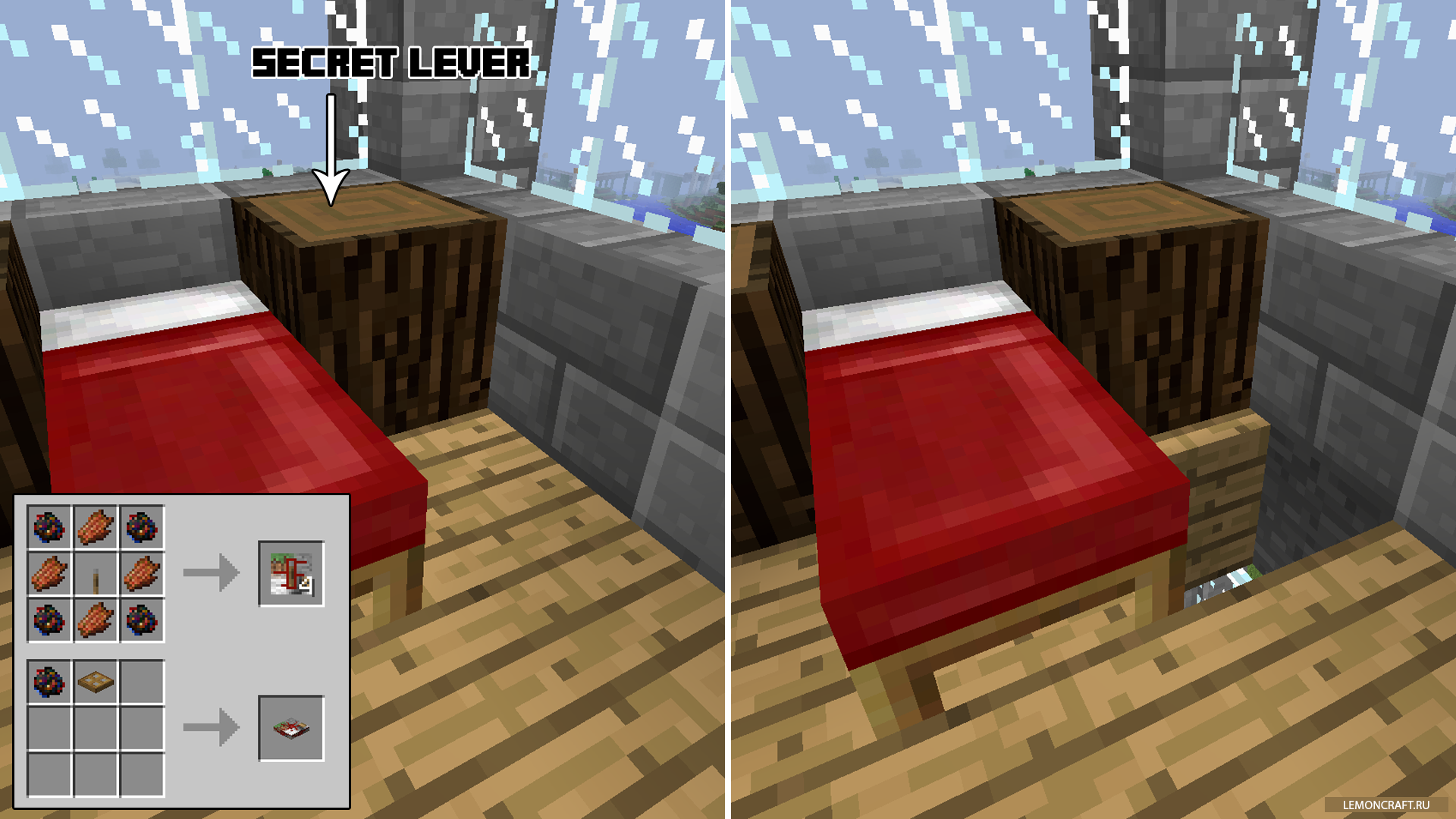 Мод Secret Rooms добавит в игру множество секретных блоков и ходов. Теперь вы сможете спрятать все, что накоплено вашим непосильным трудом. Если кто то попытается украсть ваши драгоценности вы об этом сразу же узнаете. Полезный моб для всех у кого есть, что прятать.