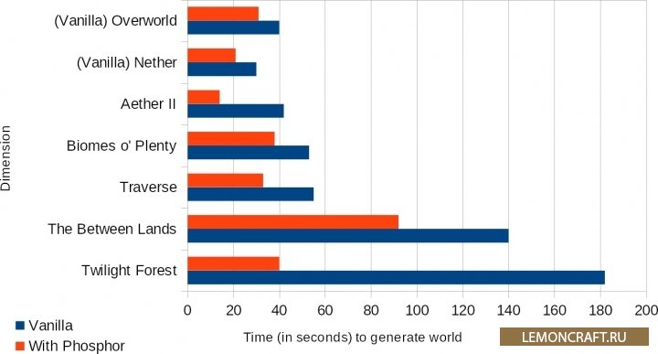 Мод на оптимизацию освещения Phosphor позволит вам произвести точную настройку освещения в игре майнкрафт, что позволит улучшить производительность и уменьшить нагрузку на процессор вашего ПК. Благодаря данной оптимизации загрузка мира ускорится на 20-25%, а процесс установки модов улучшится на 70% от стандартной установки.