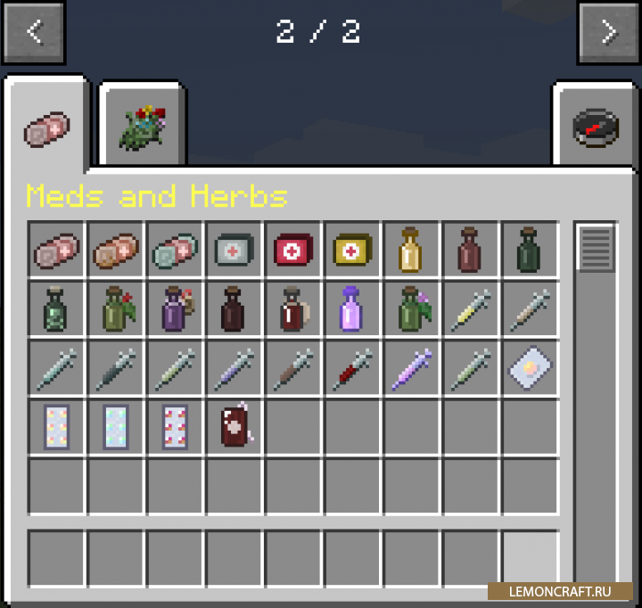 Мод на лекарства Meds and Herbs добавляет в игру возможность создавать различные лекарства, которые будут обладать , как лечебными свойствами, так и губительными. Будьте внимательны перед приемом данных препаратов, внимательно читайте инструкцию.