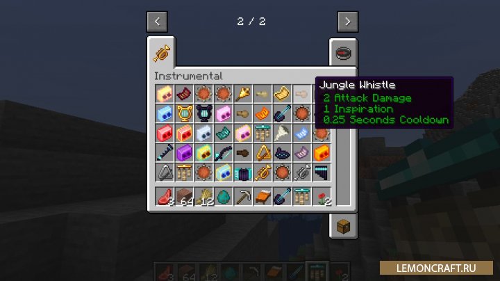 Мод на опасные музыкальные инструменты Instrumental добавит в игру возможность использования инструментов, динамиков и партитуры в качестве оружия. Вам предстоит встретится с драконом и одолеть его. Мод полностью ориентирован на ванильный стиль и все его структуры выполнены в стилистике майнкрафта.