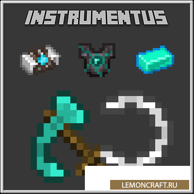 Мод на улучшение ванильных инструментов Instrumentus предназначен для того, что бы улучшить ванильную систему инструментов в игре майнкрафт, добавить новые инструменты и блоки.